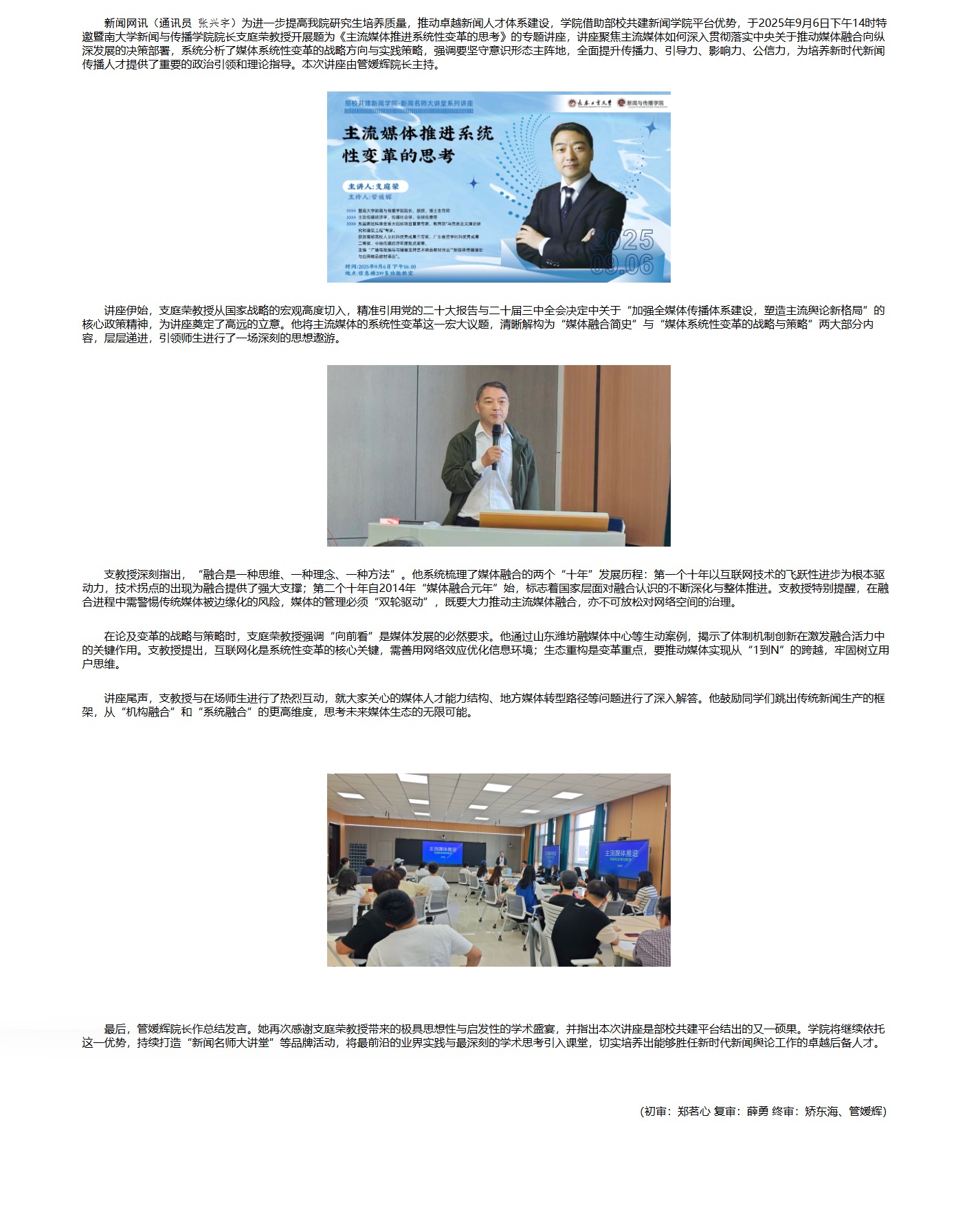 澳门博彩 部校共建新闻学院——新闻名师大讲堂系列讲座《主流媒体推进系统性变革的思考》