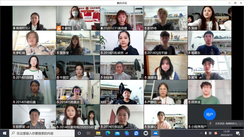 活动中,团支部成员以“云”会议方式,通过快闪(手势舞《燎原四方》)、团课(“学习新思想 青春勇担当”抗疫专题)、分享(志愿者分享抗疫故事)、宣誓(“同心抗疫 请党放心”宣誓)等互动形式,展现了共同抗“疫”的积极态度和战“疫”必胜的坚定决心。广大同学们纷纷表示要严格遵守校园疫情防控各项规定,保持良好心态,传播正能量,不造谣、不信谣、不传谣,为学校疫情防控工作贡献青春力量。
