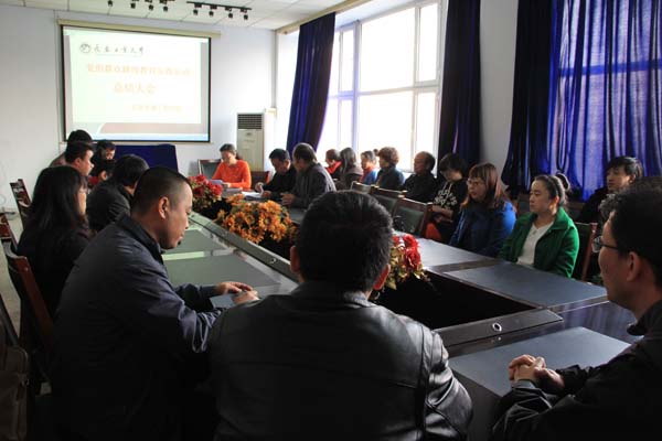 会议室召开了党的群众路线教育实践活动总结大会,校第三督导组组长胡敬军、副组长尚国众同志以及学院全体教师参加了大会,会议由院群众路线教育实践活动领导小组副组长宫春洁同志主持。