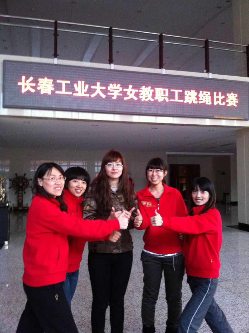 11月16日下午3:00,在学校大学生活动中心一楼大厅举行了长春工业大学女教职工跳绳比赛,我院李烨平、朱月、管媛辉、宋莹、张淑华老师代表学院参加了比赛。