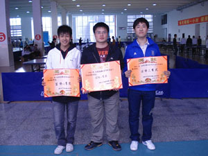 18日上午,进行了个人单打比赛,单打比赛异常热闹,选手们对待每个球小心谨慎。最后,冠、亚、季军分别被071402班的胡昌健、081401班的王德科、廖维凯摘得。