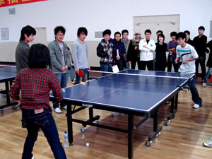 “球圣”杯乒乓球比赛在我校南湖校区体育馆拉开战况,本次比赛由信息学院体育部主办,全院广大乒乓球爱好者报名参赛,其所在班级的同学即成了他们的拉拉队。