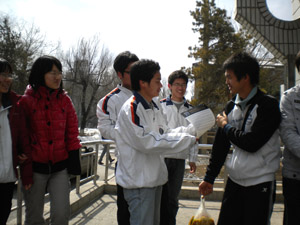 3月26日中午12:10,各志愿者协会会员在学校各大路口集合,进行张贴海报,发宣传单,倡议同学们参与“地球一小时”的活动。虽然天气寒冷,志愿者们依然热情高涨,在他们心里,就连那寒风也成了帮他们展开旗子的助手。