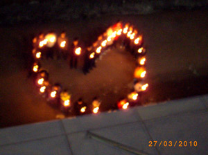 3月27日20:30分,节能减排熄灯一小时活动,启动仪式正式开始。志愿者们手捧蜡烛高声呼喊着:“低碳节能,从我做起,地球熄灯一小时”的口号。越来越多的同学被吸引到活动现场。随后,志愿者们手捧蜡烛摆出爱心形状,呼吁我们爱护地球。随着高昂的口号,校科研楼灯摆出“60”的图案,清晰可见、熠熠夺目。